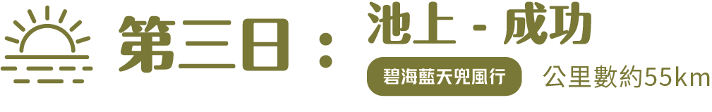 | 第2日 | 台東-池上 | 台糖池上牧野渡假村 | ★★★★ |